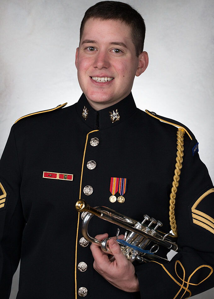 SSG Joshua K. Kauffman grew up in New Castle, Pennsylvania. Kauffman graduated in May 2017 with a bachelor’s degree in Jazz Studies from The University of North Texas. While at UNT, he played in the Grammy nominated One O’Clock Lab Band for three years, serving as both a jazz soloist and the lead trumpet player. While living in the DFW Metroplex and attending UNT, he had the opportunity to share the stage with artists such as Doc Severinsen, Bobby McFerrin, Franki Valli and the Four Seasons, Chuck Findley, Wycliffe Gordon, Arturo Sandoval, Sean Jones and many others. He toured with the One O’Clock Lab Band to Australia to headline the Generations in Jazz Festival with James Morrison in 2016, as well as performing at Cancer Blows in 2015 and the Monterey Jazz Festival in 2017. Kauffman has had many influential teachers including Allen Vizzutti, Paul Stephens, Jay Saunders, Dr. Stephen Hawk, Rodney Booth, Mike Steinel, and John Holt.